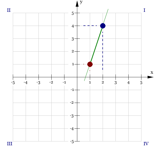 y = 3x - 2Calculate the distance between (1, 1)(2, 4) =